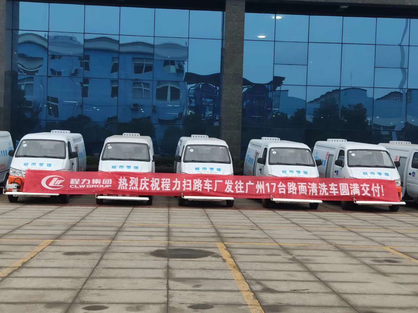 【湖北程力近期批量訂單】發(fā)往廣州17臺路面清洗車交付成功!