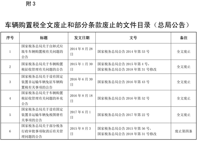 為落實(shí)《中華人民共和國車輛購置稅法》(以下簡稱《車購稅法》),規(guī)范車輛購置稅征收管理,現(xiàn)就有關(guān)事項(xiàng)公告如下: 一、車輛購置稅實(shí)行一車一申報(bào)制度。 二、《車購稅法》第六條第四項(xiàng)所稱的購置應(yīng)稅車輛時(shí)相關(guān)憑證,是指原車輛所有人購置或者以其他方式取得應(yīng)稅車輛時(shí)載明價(jià)格的憑證。無法提供相關(guān)憑證的,參照同類應(yīng)稅車輛市場平均交易價(jià)格確定其計(jì)稅價(jià)格。無同類應(yīng)稅車輛市場平均交易價(jià)格的,由稅務(wù)機(jī)關(guān)依據(jù)《中華人民共和國稅收征收管理法》(以下簡稱《稅收征管法》)及其實(shí)施細(xì)則核定其應(yīng)納稅額。 原車輛所有人為車輛生產(chǎn)或者銷售企業(yè),未開具機(jī)動(dòng)車銷售統(tǒng)一發(fā)票的,按照車輛生產(chǎn)或者銷售同類應(yīng)稅車輛的銷售價(jià)格確定應(yīng)稅車輛的計(jì)稅價(jià)格。無同類應(yīng)稅車輛銷售價(jià)格以及同類應(yīng)稅車輛無銷售價(jià)格的,按照組成計(jì)稅價(jià)格確定應(yīng)稅車輛的計(jì)稅價(jià)格。 三、購置應(yīng)稅車輛的納稅人,應(yīng)當(dāng)?shù)较铝械攸c(diǎn)申報(bào)納稅: 。ㄒ唬┬枰k理車輛登記的,向車輛登記地的主管稅務(wù)機(jī)關(guān)申報(bào)納稅; 。ǘ┎恍枰k理車輛登記的,單位納稅人向其機(jī)構(gòu)所在地主管稅務(wù)機(jī)關(guān)申報(bào)納稅,個(gè)人納稅人向其戶籍所在地或者經(jīng)常居住地的主管稅務(wù)機(jī)關(guān)申報(bào)納稅。 四、《車購稅法》第十二條所稱納稅義務(wù)發(fā)生時(shí)間,按照下列情形確定: 。ㄒ唬┵徺I自用應(yīng)稅車輛的為購買之日,即車輛相關(guān)價(jià)格憑證的開具日期; (二)進(jìn)口自用應(yīng)稅車輛的為進(jìn)口之日,即《海關(guān)進(jìn)口增值稅專用繳款書》或者其他有效憑證的開具日期; 。ㄈ┳援a(chǎn)、受贈(zèng)、獲獎(jiǎng)或者以其他方式取得并自用應(yīng)稅車輛的為取得之日,即合同、法律文書或者其他有效憑證的生效或者開具日期。 五、納稅人辦理納稅申報(bào)時(shí)應(yīng)當(dāng)如實(shí)填報(bào)《車輛購置稅納稅申報(bào)表》(附件一,以下簡稱《納稅申報(bào)表》),同時(shí)提供車輛合格證明和車輛相關(guān)價(jià)格憑證。 六、納稅人在辦理車輛購置稅免稅、減稅時(shí),除按本公告第五條規(guī)定提供資料外,還應(yīng)當(dāng)根據(jù)不同的免減稅項(xiàng)目,分別提供以下資料的原件或者復(fù)印件: 。ㄒ唬┩鈬v華使館、領(lǐng)事館和國際組織駐華機(jī)構(gòu)及其有關(guān)人員自用車輛,提供機(jī)構(gòu)證明和外交部門出具的身份證明。 。ǘ┏鞘泄黄髽I(yè)購置的公共汽電車輛,提供所在地縣級(jí)以上(含縣級(jí))交通運(yùn)輸主管部門出具的公共汽電車輛認(rèn)定表。 。ㄈ⿷覓鞈(yīng)急救援專用號(hào)牌的國家綜合性消防救援車輛,提供中華人民共和國應(yīng)急管理部批準(zhǔn)的相關(guān)文件。 。ㄋ模┗貒⻊(wù)的在外留學(xué)人員購買的自用國產(chǎn)小汽車,提供海關(guān)核發(fā)的《中華人民共和國海關(guān)回國人員購買國產(chǎn)汽車準(zhǔn)購單》。 。ㄎ澹╅L期來華定居專家進(jìn)口自用小汽車,提供國家外國專家局或者其授權(quán)單位核發(fā)的專家證或者A類和B類《外國人工作許可證》。 七、免稅、減稅車輛因轉(zhuǎn)讓、改變用途等原因不再屬于免稅、減稅范圍的,納稅人在辦理納稅申報(bào)時(shí),應(yīng)當(dāng)如實(shí)填報(bào)《納稅申報(bào)表》。發(fā)生二手車交易行為的,提供二手車銷售統(tǒng)一發(fā)票;屬于其他情形的,按照相關(guān)規(guī)定提供申報(bào)材料。 八、已經(jīng)繳納車輛購置稅的,納稅人向原征收機(jī)關(guān)申請(qǐng)退稅時(shí),應(yīng)當(dāng)如實(shí)填報(bào)《車輛購置稅退稅申請(qǐng)表》(附件二,以下簡稱《退稅申請(qǐng)表》),除提供納稅人身份證明外,還應(yīng)當(dāng)按照下列情況分別提供以下資料: (一)車輛退回生產(chǎn)企業(yè)或者銷售企業(yè)的,提供生產(chǎn)企業(yè)或者銷售企業(yè)開具的退車證明和退車發(fā)票。 。ǘ┢渌罁(jù)法律法規(guī)規(guī)定應(yīng)當(dāng)退稅的,根據(jù)具體情形提供相關(guān)資料。 九、納稅人應(yīng)如實(shí)申報(bào)應(yīng)稅車輛的計(jì)稅價(jià)格。 納稅人沒有編造虛假計(jì)稅依據(jù)的,稅務(wù)機(jī)關(guān)按照其申報(bào)的計(jì)稅價(jià)格征收稅款;納稅人編造虛假計(jì)稅依據(jù)的,稅務(wù)機(jī)關(guān)依照《稅收征管法》及其實(shí)施細(xì)則的相關(guān)規(guī)定處理。 十、稅務(wù)機(jī)關(guān)追繳稅款時(shí),納稅人無法按照規(guī)定提供申報(bào)資料的,可以依據(jù)司法、審計(jì)、財(cái)政等有關(guān)機(jī)關(guān)的文書,為其辦理補(bǔ)稅手續(xù)。 十一、本公告要求納稅人提供的資料,稅務(wù)機(jī)關(guān)能夠通過政府信息共享等手段獲取相關(guān)資料信息的,納稅人不再提交。 十二、本公告所稱的納稅人身份證明:單位納稅人為《統(tǒng)一社會(huì)信用代碼證書》或者營業(yè)執(zhí)照或者其他有效機(jī)構(gòu)證明,個(gè)人納稅人為居民身份證或者居民戶口簿或者入境的身份證