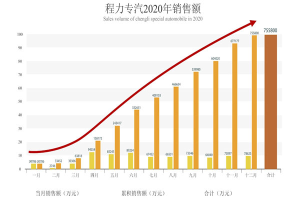 湖北程力公司在2020年初制定的專汽產(chǎn)值原本是完成70億目標(biāo),但隨著一場突如其來的疫情災(zāi)害影響,直接停產(chǎn)一個(gè)半月,耽誤產(chǎn)值13億元;對此,以程阿羅總經(jīng)理為首的高層團(tuán)隊(duì)精準(zhǔn)研判科學(xué)施策,面對疫情不畏困難,將沖刺目標(biāo)調(diào)高到75億;一手抓疫情防控一手抓復(fù)工復(fù)產(chǎn),積極應(yīng)對逆勢而上,大膽創(chuàng)新及時(shí)推出高端負(fù)壓救護(hù)車、醫(yī)療廢棄物轉(zhuǎn)運(yùn)車、疫情消毒車、應(yīng)急搶險(xiǎn)車、核酸取樣檢測車等適銷對路的緊缺產(chǎn)品,馳援全國及國際疫情防控第一線,與病毒擴(kuò)散搶時(shí)間、奪戰(zhàn)場,把耽誤的時(shí)間補(bǔ)回來,把失去的市場占領(lǐng)回來。 2020年三月份以來,湖北程力專汽及應(yīng)急產(chǎn)品的生產(chǎn)銷售一直持續(xù)快速的攀升,平均增長速度超過了20%,遙遙領(lǐng)先于同行業(yè)的其他生產(chǎn)廠家,高于歷史同期增長水平,打了一個(gè)漂亮的翻身仗,截止12月25日上午10:38分,專汽產(chǎn)值提前6天順利完成75.58億,交出了一份令人滿意的答卷。