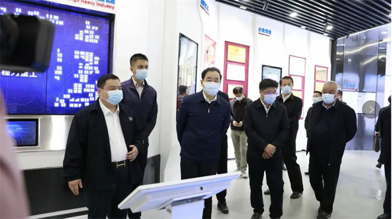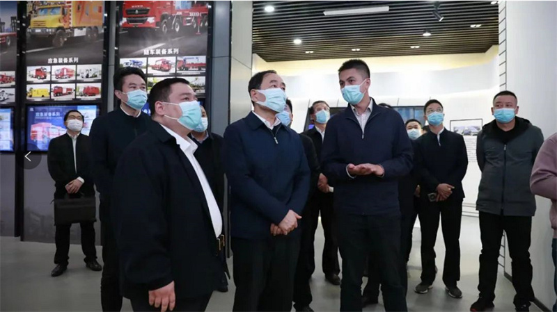 右上圖:湖北省副省長趙海山(左二)、隨州市政府副市長黃繼軍(左三)與程力汽車集團董事長程阿羅(左一)等負責人參觀程力專汽5G數(shù)字云展廳。 程力集團高質(zhì)量發(fā)展的重大舉措引起了湖北省領(lǐng)導的高度重視,近日,趙海山副省長一行領(lǐng)導,在隨州市副市長黃繼軍、曾都區(qū)區(qū)委姜晧,以及隨州市、曾都區(qū)政府職能部門負責人的陪同下,赴程力汽車集團進行專題調(diào)研,他首先參觀了程力汽車集團5G數(shù)字云展廳,對程力集團跨越式發(fā)展與對地方經(jīng)濟建設(shè)的貢獻,表示了充分肯定;鼓勵企業(yè)以新技術(shù)、新材料、新工藝為重要抓手,以研發(fā)生產(chǎn)氫燃料動力整車和新能源商用車暨應(yīng)急裝備產(chǎn)品轉(zhuǎn)型升級為突破口,一心一意謀發(fā)展,堅定不移地走科技創(chuàng)新和綠色環(huán)保可持續(xù)發(fā)展之路。