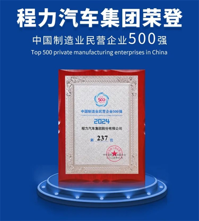 程力汽車集團(tuán)再次榮登2024中國(guó)民企500強(qiáng),改革創(chuàng)新建世界一流企業(yè)