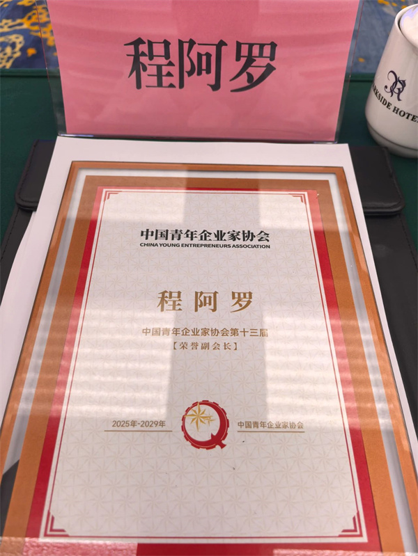 中國(guó)青年企業(yè)家協(xié)會(huì)授予程力汽車集團(tuán)董事長(zhǎng)程阿羅為中國(guó)青年企業(yè)家協(xié)會(huì)榮譽(yù)副會(huì)長(zhǎng)