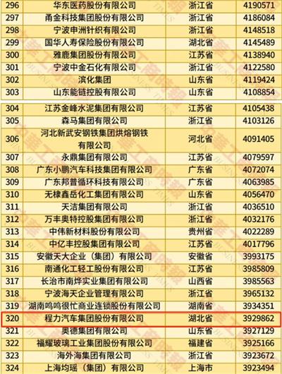 2025年中國名企500強(qiáng)榜單程力汽車集團(tuán)連續(xù)8年入榜