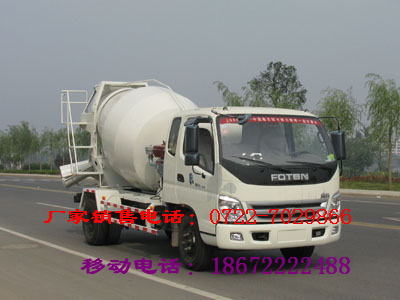 時代金剛排半駕駛室,玉柴130馬力196kw, 增壓發(fā)動機,9-10噸后橋,斷氣剎,6檔箱,帶副變速153橋,825-16或900-20鋼絲胎,280雙層大梁,方向助力,暖風(fēng),帶攪拌車取力器。 3方福田混凝土攪拌運輸車參數(shù):