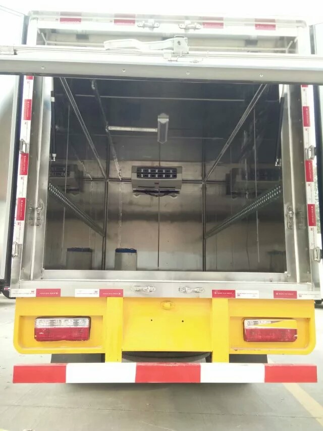 湖北程力東風多利卡醫(yī)療廢物轉運車: 配備東風多利卡經(jīng)典1730駕駛室,朝柴100馬力,2噸前橋,3.5噸后橋,萬里揚5檔變速箱,700鋼絲胎,氣剎,動轉,ABS。車廂為密閉式結構,內腔材料為不銹鋼板,防銹、防水耐腐蝕、易清洗和。車廂內部裝有低溫殺毒,紫外線殺毒,噴霧殺毒設備,可隨時對車廂內部進行。廂體兩側設有桶固定裝置,保證車輛緊急啟動、停車或事故時廢棄物收集桶不會和翻轉。 湖北程力福田奧鈴醫(yī)療廢物轉運車:
