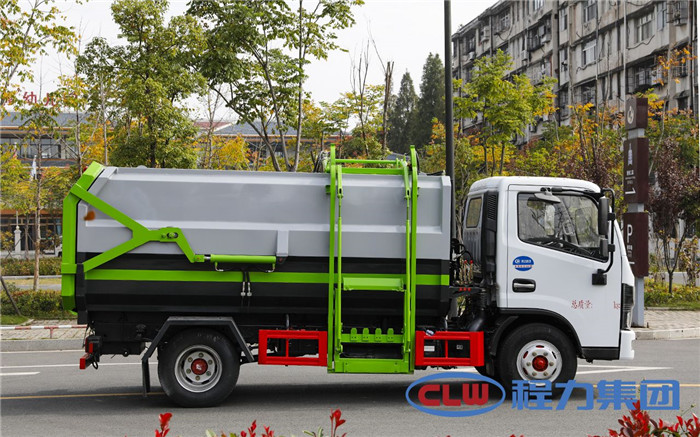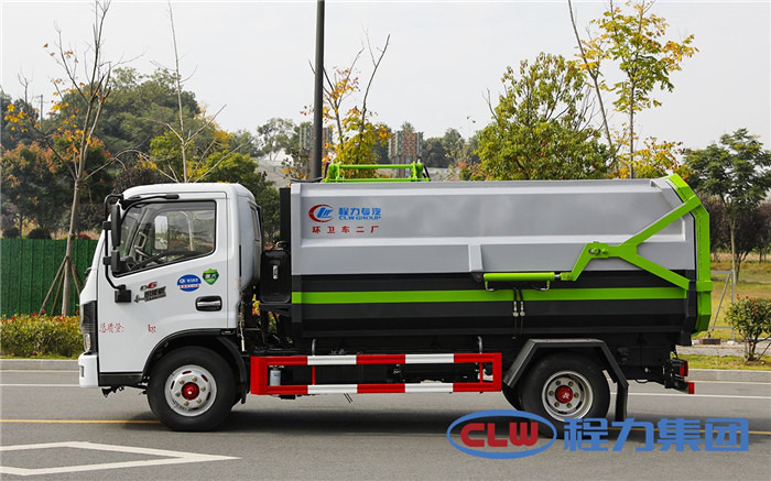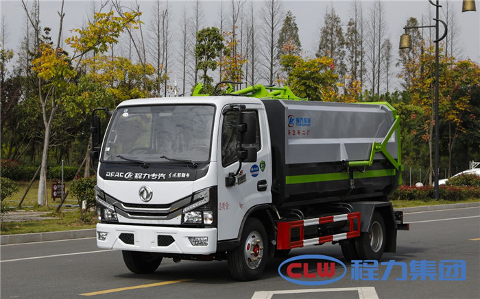 湖北程力國六東風多利卡5方掛桶垃圾車(不帶壓縮)程力威牌CLW5071ZZZD6型自裝卸式垃圾車廠家配置: 底盤配置:東風小多利卡國六5方掛桶垃圾車(不帶壓縮),采用東風原裝底盤,D6系列新款駕駛室,采用東風朝柴升級版CY4BK461國六排放發(fā)動機,95KW,130匹大馬力,萬里揚5擋變速箱,7.00鋼絲胎,國六車輛在國五基礎上增加了DPF顆粒捕捉器,多功能方向盤。 掛桶垃圾車是由密封式垃圾廂、液壓系統(tǒng)、操作系統(tǒng)組成,實現(xiàn)一車與多個垃圾桶聯(lián)合作業(yè),廂體上的液壓提升機裝置可將垃圾桶吊上、放下,上下升降。箱體采用Q235碳鋼板焊接而成,小多利卡、大多利卡為邊3底4mm厚度,3950軸距以上為邊4底5mm厚度,箱體底部油缸舉升自卸,側(cè)面提升機可選鏈條式、拉桿式,后門手動開啟加裝手電一體加一千,箱體加厚請電議。 湖北程力國六東風多利卡5方掛桶垃圾車(不帶壓縮)程力威牌CLW5071ZZZD6型自裝卸式垃圾車多方位圖片;