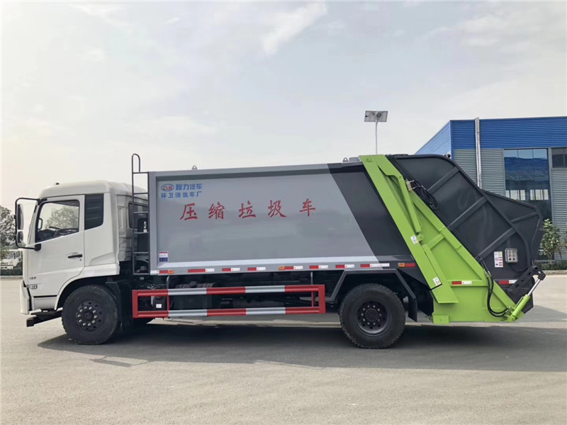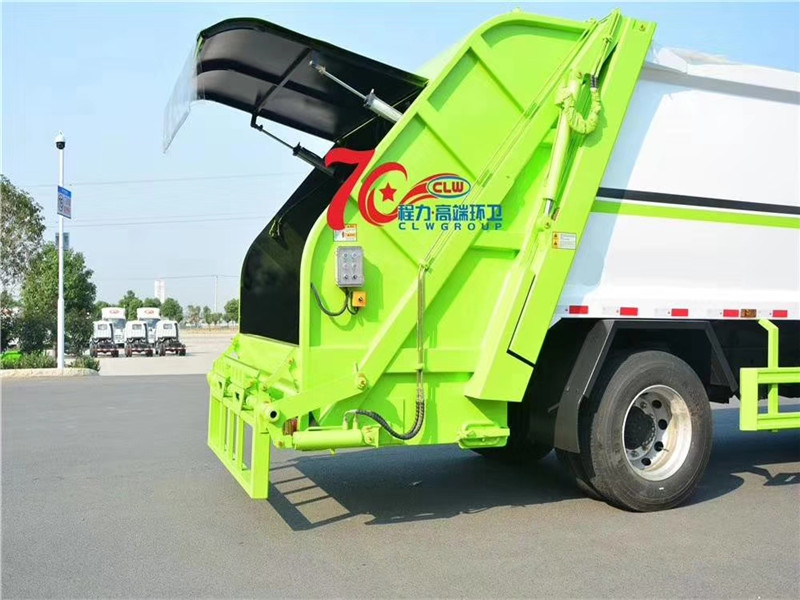 專用部分主要技術特點及產(chǎn)品描述: 1.垃圾箱:采用加強梁和鋼板焊接而成牢固的框架結構,實際容積最大為12-14立方,外形美觀,重量輕, 受力好,不變形;推鏟由鋼管骨架和折面板構成,不僅結構輕巧,又能使垃圾均勻分布,卸料干凈徹底;填裝器主要由填裝器殼體、滑板、刮板等構件組成,各構件采用受力良好的梁板或箱型結構,結構牢固,重量輕;為了提高使用壽命,對箱體進行了磷化防銹處理,并噴涂防銹底漆。2.液壓系統(tǒng):利用電控和液壓控制的優(yōu)點,通過控制轉換,保證了各機構動作準確可靠,提高了使用可靠性和效率;采用了先進的液壓舉升安全回路。其原理是在液壓系統(tǒng)中的舉升油缸上設置了單向平衡閥。該閥隔斷了舉升油缸與液壓膠管的直接連接,即使油管爆裂,填裝器也不會突然落下造成惡性事故,提高了使用安全性。3.裝卸方式:箱體尾部翻轉架帶翻桶(斗)機構裝卸,不會對操作人員造成污染。4.垃圾箱與填裝器之間采用特制橡膠條密封,密封性好,杜絕了二次污染。 湖北程力汽車國六東風天錦12-14方壓縮垃圾車多方位圖片展示: