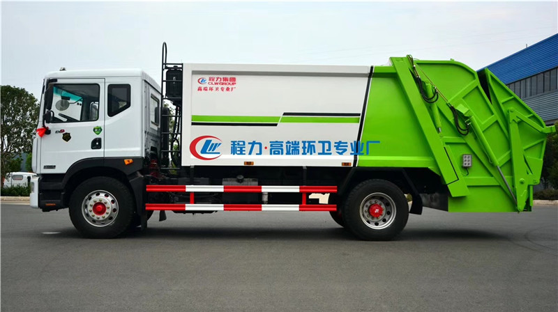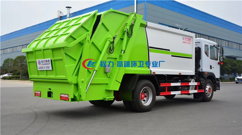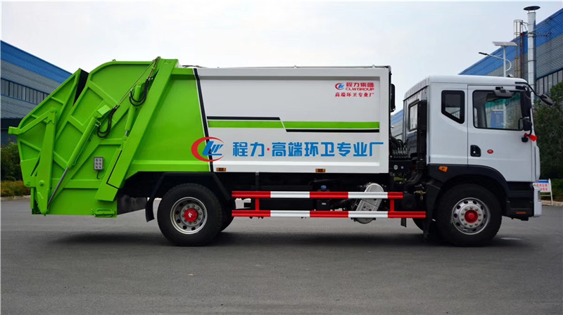 4、智能操作系統(tǒng)采用西門子PLC一鍵循環(huán),駕駛室內(nèi)與車外均有電控操作盒,后尾部左右各帶一個(gè)操作盒。駕駛室室內(nèi)卸料時(shí)操作,外部裝料時(shí)操作,另帶有一套手動(dòng)應(yīng)急操作,同時(shí)設(shè)有電子自動(dòng)油門,不在需要人工加減油門來(lái)調(diào)節(jié)工作速度,一個(gè)司機(jī)就可以完成全部操作,也可減少或避免野蠻加油而導(dǎo)致液壓系統(tǒng)故障。 湖北程力汽車壓縮垃圾車國(guó)六東風(fēng)D9壓縮垃圾車多方位圖片展示: