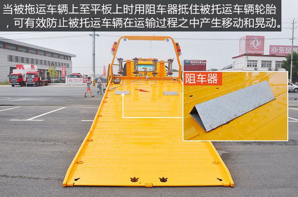 當被拖運車輛上至平板上時用阻車器抵住被托運車輛輪胎,可有效防止被托運車輛在運輸過程之中產生移動和晃動,設計合理使用方便,可以很好的保護被托運車輛;瑒酉尬唬潭ǜ_,操作更簡便。