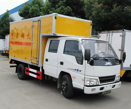 1、爆破器材運(yùn)輸車底盤的型號(hào)可分為:東風(fēng)、江鈴、江淮、奧鈴、時(shí)代、歐曼、慶鈴、解放等。驅(qū)動(dòng)形式可分為:雙驅(qū)動(dòng)和四驅(qū)動(dòng),按額定載質(zhì)量有0.5噸—9.9噸(國防科工委要求最大上戶噸位不超過10噸)。 2、廂體分為兩部分:A:運(yùn)輸炸藥;B:運(yùn)輸雷管(抗暴容器);C:炸藥,雷管同時(shí)運(yùn)輸(廂體必須隔倉,分倉運(yùn)輸,加裝抗爆容器)。廂體為雙層金屬骨架結(jié)構(gòu),外部為冷扎鋼板,內(nèi)壁采用鋁合金板蒙面,夾層為隔熱阻燃材料填充。設(shè)置對(duì)開門,如需安裝抗暴容器則增開側(cè)門,側(cè)壁設(shè)有防雨功能自然通風(fēng)窗口,以使廂內(nèi)外空氣流動(dòng),廂體內(nèi)部做防靜電處理,廂體底部與廂內(nèi)前部鋪有阻燃導(dǎo)靜電膠板,并與底盤等電位連接,通過車輛后端的導(dǎo)靜電裝置與大地相連,可防止靜電火花的產(chǎn)生和車輛靜電及時(shí)釋放,提高爆破器材運(yùn)輸車的安全性。廂體內(nèi)部前面和側(cè)面裝有固定拉環(huán),與捆綁帶使用捆綁貨物以避免移動(dòng),保證安全。 3、 感煙報(bào)警器:是感測(cè)車廂內(nèi)火情的專用裝置,安裝在車廂內(nèi)頂部,并與駕駛室內(nèi)報(bào)警裝置連接,當(dāng)有火情煙霧出現(xiàn),在駕駛室進(jìn)行蜂鳴報(bào)警通知駕駛員,保證及時(shí)消除險(xiǎn)情。 4、防盜報(bào)警器:為了保證安全,在車廂后方和側(cè)面開設(shè)有門,在各門器框上方安裝有門磁開關(guān)報(bào)警器(根據(jù)用戶要求選裝防盜監(jiān)視器。行車記錄儀等)當(dāng)廂門被打開時(shí),駕駛室內(nèi)的蜂鳴器發(fā)出報(bào)警聲音,不使用時(shí)可將駕駛室內(nèi)的控制開關(guān)關(guān)閉?杀WC在行駛過程中,整車始終處于受控狀態(tài)。 5、整車發(fā)動(dòng)機(jī)排氣裝置采用前置式,并安裝有排氣火花熄滅器(防火罩),防止熱源對(duì)爆炸物產(chǎn)生不良影響。 6、底盤上裝有兩條拖地導(dǎo)靜電膠帶,廂體外側(cè)安裝示廓標(biāo)記燈以及手提滅火器等安全裝置。 7、車身顏色為黃色,并有“嚴(yán)禁煙火”和“爆”字樣,貼有反光標(biāo)識(shí)。 |