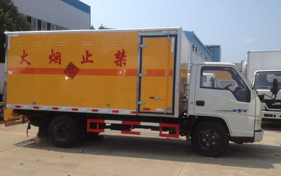 專用功能說明: 1、爆破器材運輸車底盤的型號可分為:東風(fēng)、江鈴、江淮、奧鈴、時代、歐曼、慶鈴、解放等。驅(qū)動形式可分為:雙驅(qū)動和四驅(qū)動,按額定載質(zhì)量有0.5噸—9.9噸(國防科工委要求最大上戶噸位不超過10噸)。 2、廂體分為兩部分:A:運輸炸藥;B:運輸雷管(抗暴容器);C:炸藥,雷管同時運輸(廂體必須隔倉,分倉運輸,加裝抗爆容器)。廂體為雙層金屬骨架結(jié)構(gòu),外部為冷扎鋼板,內(nèi)壁采用鋁合金板蒙面,夾層為隔熱阻燃材料填充。設(shè)置對開門,如需安裝抗暴容器則增開側(cè)門,側(cè)壁設(shè)有防雨功能自然通風(fēng)窗口,以使廂內(nèi)外空氣流動,廂體內(nèi)部做防靜電處理,廂體底部與廂內(nèi)前部鋪有阻燃導(dǎo)靜電膠板,并與底盤等電位連接,通過車輛后端的導(dǎo)靜電裝置與大地相連,可防止靜電火花的產(chǎn)生和車輛靜電及時釋放,提高爆破器材運輸車的安全性。廂體內(nèi)部前面和側(cè)面裝有固定拉環(huán),與捆綁帶使用捆綁貨物以避免移動,保證安全。 3、 感煙報警器:是感測車廂內(nèi)火情的專用裝置,安裝在車廂內(nèi)頂部,并與駕駛室內(nèi)報警裝置連接,當(dāng)有火情煙霧出現(xiàn),在駕駛室進行蜂鳴報警通知駕駛員,保證及時消除險情。 4、防盜報警器:為了保證安全,在車廂后方和側(cè)面開設(shè)有門,在各門器框上方安裝有門磁開關(guān)報警器(根據(jù)用戶要求選裝防盜監(jiān)視器。行車記錄儀等)當(dāng)廂門被打開時,駕駛室內(nèi)的蜂鳴器發(fā)出報警聲音,不使用時可將駕駛室內(nèi)的控制開關(guān)關(guān)閉。可保證在行駛過程中,整車始終處于受控狀態(tài)。 5、整車發(fā)動機排氣裝置采用前置式,并安裝有排氣火花熄滅器(防火罩),防止熱源對爆炸物產(chǎn)生不良影響。 6、底盤上裝有兩條拖地導(dǎo)靜電膠帶,廂體外側(cè)安裝示廓標記燈以及手提滅火器等安全裝置。 7、車身顏色為黃色,并有“嚴禁煙火”和“爆”字樣,貼有反光標識。 |