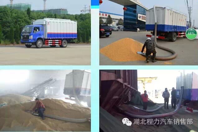 湖北程力散裝糧食車配置優(yōu)勢(shì)和工作原理廠家價(jià)格圖片,參數(shù) 散裝糧食運(yùn)輸車主要由:密封式糧箱、夾心取力器、高壓風(fēng)機(jī)、除塵器、集塵箱、齒輪泵、多路閥、油缸等組合而成。 散裝糧食運(yùn)輸車配置: 糧箱尺寸:4900×2250×1800(mm),實(shí)際容積20m³,有效容積18m³。糧箱材質(zhì):邊三底四。右側(cè)開一側(cè)門,尾部有大小兩個(gè)自卸口。