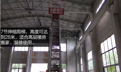 7節(jié)伸縮爬梯,高度可達到28米,適合高層樓房搬家、裝修使用。爬梯頂部安裝滑輪,適合貼墻升高時使用。云梯采用韓國進口技術(shù),部分部件采用韓國原廠整裝進口!包括液壓系統(tǒng),油路管件都是韓國原廠提供。