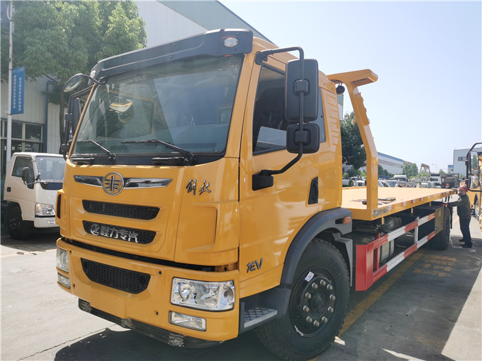 國(guó)六解放龍V10噸一拖二平板清障車(chē)