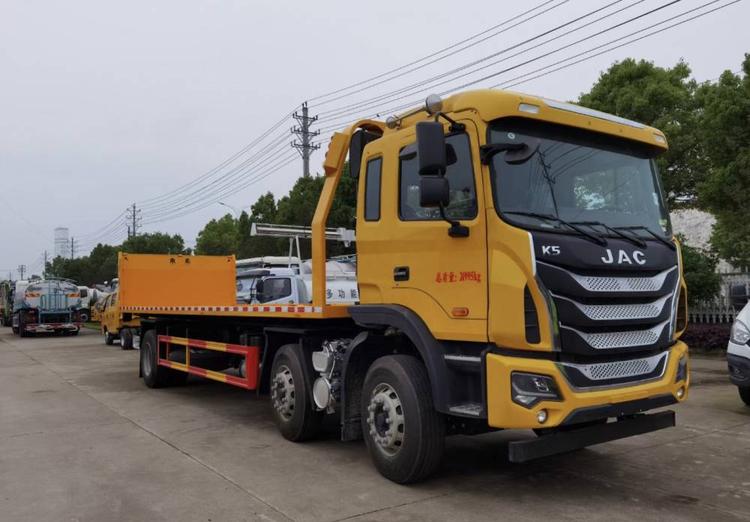 江淮K5小三軸,錫柴290馬力,法士特8檔變速箱 11.00輪胎,280大梁,空調(diào),ABS,行駛記錄儀,電動(dòng)玻璃升降,電動(dòng)翻轉(zhuǎn),氣囊座椅。 12噸上裝,12噸后托臂,重心低,受力平均,平板尺寸9.6米,平板寬2.55米,10噸液壓卷?yè)P(yáng)。 湖北程力國(guó)六江淮K5小三軸平板清障車(chē)(平板長(zhǎng)度9.6米)程力牌CL5250TQZH6ZQ型清障車(chē)圖片價(jià)格: