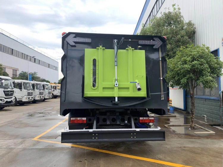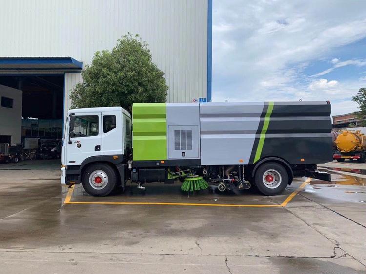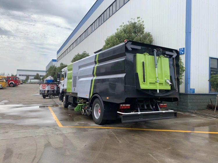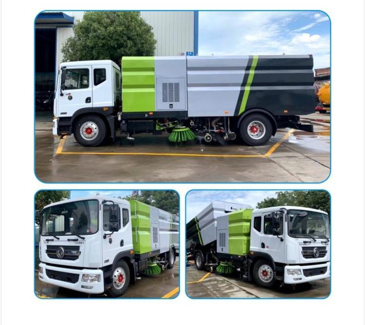 湖北程力東風D9洗掃車(國六) 底盤配置: 采用東風D9系列新款駕駛室,3950mm軸距,搭載國六(國VI)玉柴200馬力柴油發(fā)動機/康明斯210匹馬力柴油發(fā)動機,6檔變速箱,9T后橋,295真空胎,方向助力、斷氣剎、電動窗、中控鎖、ABS,原裝空調,GB7258新規(guī)。 湖北程力東風D9洗掃車(國六)上裝配置: 帶2個中置掃盤;中置超寬吸嘴;雙層吸塵筒; 康明斯170馬力副發(fā)動機;臺灣液壓閥;大力馬達;德國高壓水泵 (前沖/側噴/中噴/后噴霧)/側沖洗水槍/垃圾箱自潔裝置); 萬向高壓路沿清洗;威龍低壓泵(前沖),氣動球閥控制; 4mm不銹鋼垃圾箱;不銹鋼水箱;德國控制器;尾部箭頭燈; 機油、垃圾箱、水箱均帶防溢或低位報警裝置;倒車及洗掃狀態(tài)室內監(jiān)視器; 多種語音提示;倒車自動保護、防傾倒垃圾翻車保護、檢修安全保護; 20m高壓沖洗卷盤;刷臂轉動機構使用德國進口高新耐磨工程隔套,免打黃油; 冷彎無縫液壓油管;運動控制器一鍵電腦控制。洗掃寬度3.5m;吸入粒度p110mm。 湖北程力東風D9洗掃車(國六)多方位圖片: