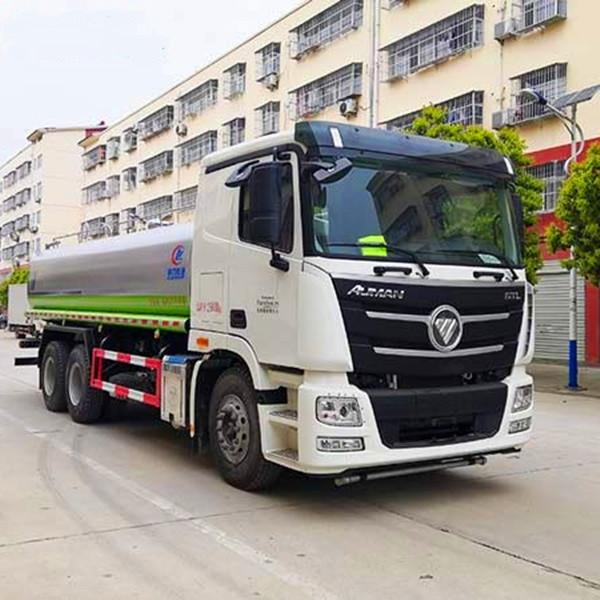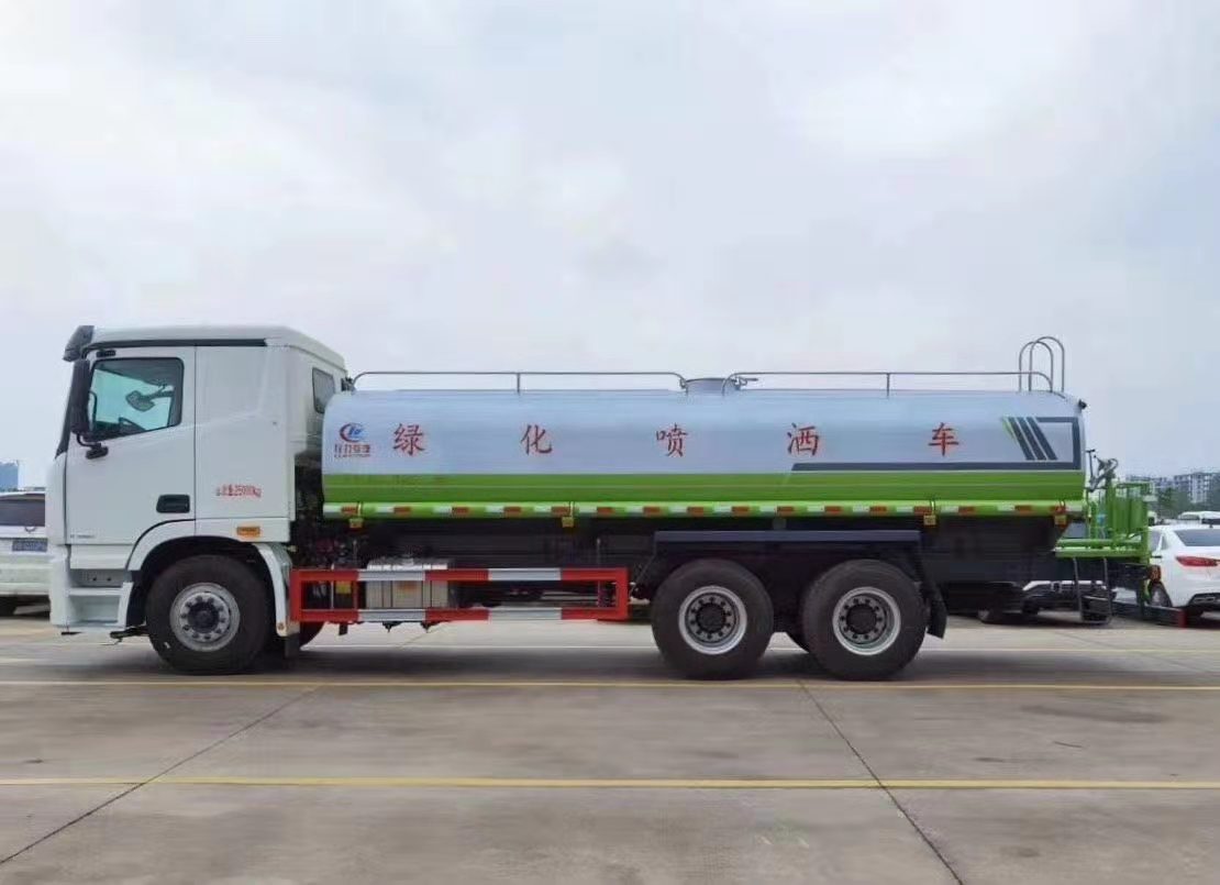 湖北程力國六歐曼后雙橋18-20方綠化噴灑車(灑水車)程力威牌CLW5250GPSBDP型綠化噴灑車廠家配置: 湖北程力國六福田歐曼GTL后雙橋20噸灑水車底盤配置:采用福田歐曼后雙橋原裝底盤,福田歐曼GTL豪華駕駛室,4400+1350mm軸距,搭載國六(國Ⅵ)東風(fēng)康明斯260馬力柴油發(fā)動機(jī),功率191kw,國六排放,陜齒法士特八檔變速箱,11.00R20鋼絲胎,前橋5T,后橋雙10T,方向助力,斷氣剎,排氣制動,原裝空調(diào),行駛記錄儀,多媒體顯示屏,電動門窗,中控鎖,氣囊座椅,ABS。 湖北程力國六福田歐曼GTL后雙橋20方灑水車專用配置:罐體容積:18立方米,罐體鋼板為5mm碳鋼Q235材質(zhì)專用容積板一次成型,罐內(nèi)隔板具有防波作用,以減輕汽車行駛時罐體液體沖擊;配大功率專用灑水泵,泵可自吸自排;整車前沖、后灑、側(cè)噴、后平臺帶綠化灑水炮,灑水炮可全方位旋轉(zhuǎn),可連續(xù)調(diào)成直沖狀、大雨、小雨、毛毛雨;前封頭帶水位計,后平臺主管路帶1寸澆花接口,后爬梯,帶1個消防接頭,帶1個自流閥,1個過濾裝置。