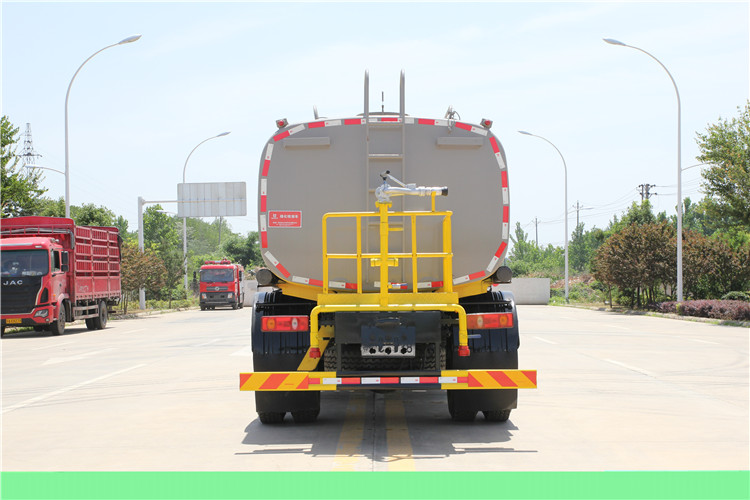 采用大流量水泵60-90,基本灑水功能前沖、后灑、側(cè)噴、工作平臺帶高炮(可調(diào)節(jié)成霧狀、直柱狀)、可泵進(jìn)泵出、罐體兩側(cè)炮筒、帶兩根抽水軟管,上裝標(biāo)配,罐體自動焊,大梁不動焊