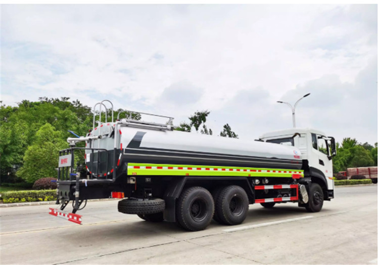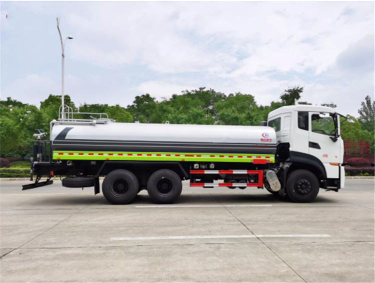 東風(fēng)天龍KL/VL后雙橋灑水車是一款采用國六排放標(biāo)準東風(fēng)天龍后雙橋原裝底盤改裝的環(huán)衛(wèi)車,該車配置豪華,駕乘舒適,該車罐體容積:18立方米,標(biāo)配前沖、后灑、側(cè)噴、后平臺高炮,是園林綠化、小區(qū)物業(yè)、公路養(yǎng)護的常用車型。 國六東風(fēng)天龍后雙橋18方高端灑水車(綠化噴灑車)底盤配置:采用東風(fēng)天龍后雙橋原裝底盤,東風(fēng)天龍豪華駕駛室,4400+1350mm軸距,搭載國六(國Ⅵ)東風(fēng)康明斯290馬力柴油發(fā)動機,功率213kw;東風(fēng)商用DDi350馬力柴油發(fā)動機,功率257kw,國六排放,陜齒法士特9檔變速箱,11.00R20鋼絲胎/295真空胎,前橋5T,后橋雙10T,方向助力,斷氣剎,排氣制動,原裝空調(diào),行駛記錄儀,多媒體顯示屏,電動門窗,中控鎖,氣囊座椅,ABS。 國六東風(fēng)天龍后雙橋18方高端灑水車(綠化噴灑車)專用配置:罐體容積:18立方米,罐體鋼板為4mm碳鋼Q235材質(zhì)專用容積板一次成型,罐內(nèi)隔板具有防波作用,以減輕汽車行駛時罐體液體沖擊;配大功率專用灑水泵,泵可自吸自排;整車前沖、后灑、側(cè)噴、后平臺帶綠化灑水炮,灑水炮可全方位旋轉(zhuǎn),可連續(xù)調(diào)成直沖狀、大雨、小雨、毛毛雨;前封頭帶水位計,后平臺主管路帶1寸澆花接口,后爬梯,帶1個消防接頭,帶1個自流閥,1個過濾裝置。