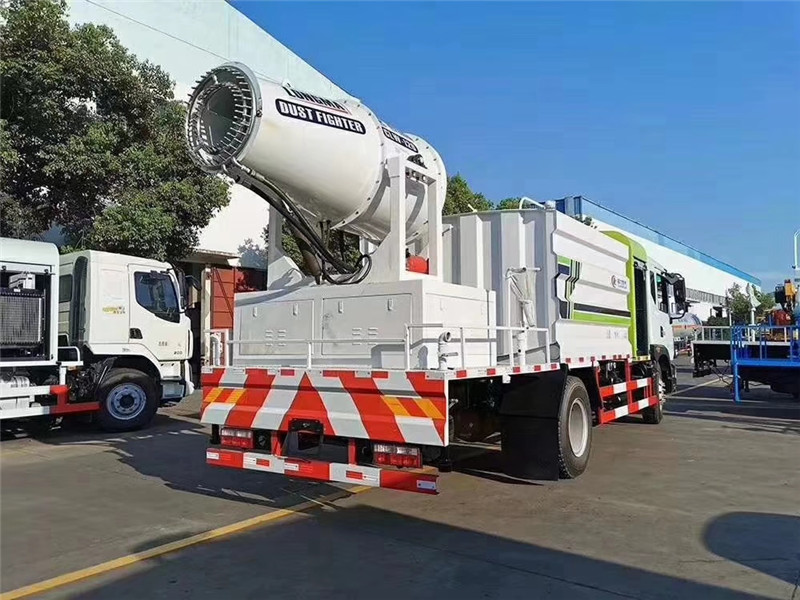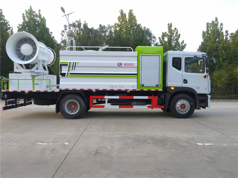 底盤配置:采用國六東風新款多利卡D9系列底盤生產(chǎn),軸距4500mm,底盤發(fā)動機為康明斯230馬力,295真空胎,東風6檔變速箱,國六排放標準,罐體容積:10立方,罐體鋼板采用Q235碳鋼鋼板,采用方形瓦楞設計,外觀大氣靚麗,后工作平臺加裝高效率車載式風送噴霧機,噴藥炮霧化效果好,可遠程噴霧,東風多利卡D9抑塵車帶前沖后灑、側噴、平臺高炮、自流閥及消防接頭各1個、標配億豐泵或金龍泵,可選裝50-100米噴霧機。 上裝配置:罐體容積10立方,罐體為方形罐,罐體內部做防腐,主管路鍍鋅,帶前部沖洗路面噴灑裝置、后部扇形降塵噴灑裝置,兩側面噴灑裝置,帶后部工作平臺、平臺上安裝綠化灑水炮(炮噴射形狀可調),可調直沖狀、大雨、中雨、毛毛雨,可連續(xù)調節(jié),采用中聯(lián)唯佳大流量水泵,消防接口可自流,音樂喇叭,50-100米噴霧機組。 噴霧機配置:TDM-M08型,可無線操作,及手動操作。根據(jù)需求選配的霧炮機霧化距離在60-120米不等(靜風室內距離),實際射程:(霧化射程會受濕度、溫度、風速等各方面天氣因素的影響,另外天氣干燥地區(qū)一部分在空中被蒸發(fā)掉)。CLW-100型60米,副發(fā)電機組功率50(Kw),風機功率15(Kw),不銹鋼多級離心泵功率5.5(Kw)。100米無線操作,霧化距離60米(靜風室內距離)實際射程:(霧化射程會受濕度、溫度、風速等各方面天氣因素的影響,另外天氣干燥地區(qū)一部分在空中被蒸發(fā)掉)。 湖北程力國六東風D9方罐抑塵車程力威牌CLW5180TDYD6型多功能抑塵車圖片價格: